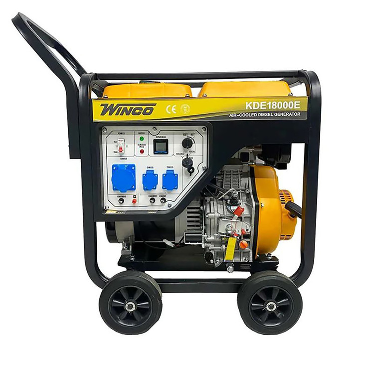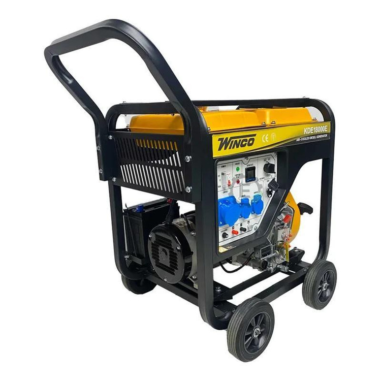 موتور برق دیزلی تک فاز وینکو 18000 دارای توان ماکسیمم 8.5 کیلو وات و توان دائم 8 کیلو وات می باشد. این موتور برق دیزلی دارای بدنه تقویت شده آلومینیوم می باشد و دارای نمایشگر دیجیتال نیز می باشد. این موتور برق دارای یک عدد خروجی صنعتی و دو عدد خروجی معمولی می باشد. سیستم راه اندازی این موتور برق هندلی و استارتی می باشد و سیستم خنک کننده آن نیز هواخنک می باشد. سوخت مصرفی این موتور برق گازوئیل می باشد و برای جابجایی راحت تر آن دارای چرخ و دسته نیز می باشد. این موتور برق دارای سیم پیچ تماما مس و سیستم تنظیم و ثبیت ولتاژ (AVR) نیز می باشد از این موتور برق میتوان به صورت داعم استفاده کرد موتور برق وینکو با توان استارتی 8500 وات، سنسور سطح روغن، فرکانس 50 هرتز مناسب جوشکاری سنگین، مشاغل صنعتی، گارگاه، کارخانه و تمام تجهیزاتی که با آمپر 38.25 کار می کنند، می باشد